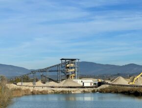 Der gesamte Rohkies wird aufbereitet. Die für die Betonindustrie nicht brauchbaren tonigen Bestandteile werden abgetrennt.